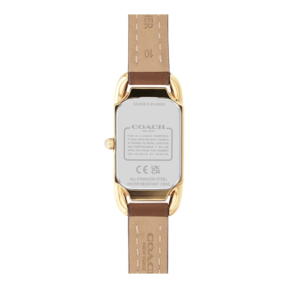 Pensée pour les femmes d’aujourd’hui, la montre COACH Cadie incarne un équilibre subtil entre raffinement et simplicité. Avec son boîtier doré de 32 mm, elle capte la lumière avec délicatesse, tandis que son bracelet en cuir marron l’ancre dans une esthétique chaleureuse et intemporelle.