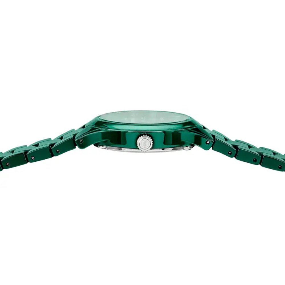 Montre de la collection Céramique, mouvement quartz 2 aiguilles, cadran vert, boitier céramique verte sur bracelet céramique verte.